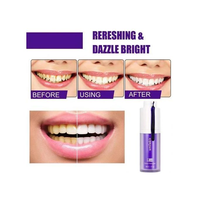 Discover the secret behind purple toothpaste! Just like violet shampoo neutralizes yellow tones in blonde hair, this innovative formula counteracts yellow tints on teeth for an instantly brighter smile.